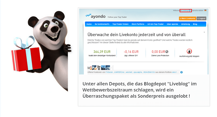 …wer im Wettbewerbszeitraum unser Blogdepot „Liveblog“ bei ayondo schlägt hat zusätzlich die Chance auf ein Überraschungspaket.