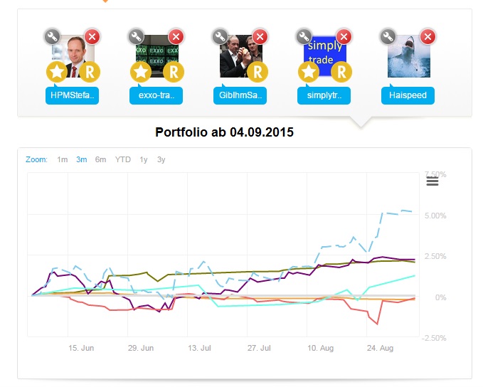 Platz also für 2 Neuzugänge. Ein Kandidat war für mich klar – simplytrader. Überzeugender Handel mit System. Herr Maier, den ich auch im Frühjahr auf der Invest persönlich sprechen konnte, bleibt seiner Strategie treu und verfolgt diese sehr diszipliniert. Inzwischen honorieren dies 1.300 Follower !