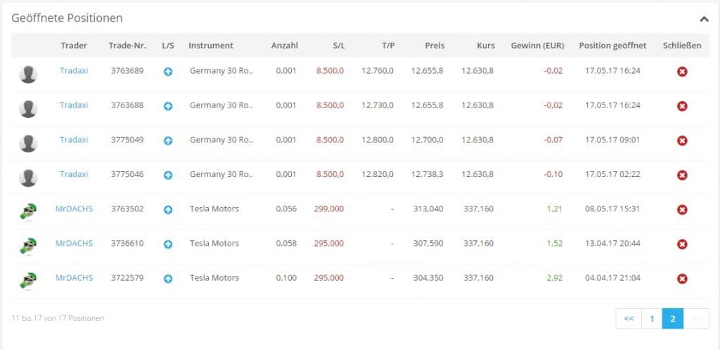 Wie ihr dem Screenshot entnehmen könnt, ist Patternicus kurzfristig short gebürstet und Tradaxi long.