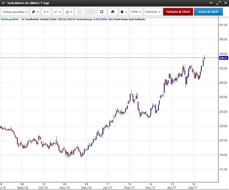 Einzig MrDACHS spielt eine Extrawurst und hält mit Erfolg an der Tesla Story fest. Ein Blick auf den Chart erklärt auch sehr schnell warum: