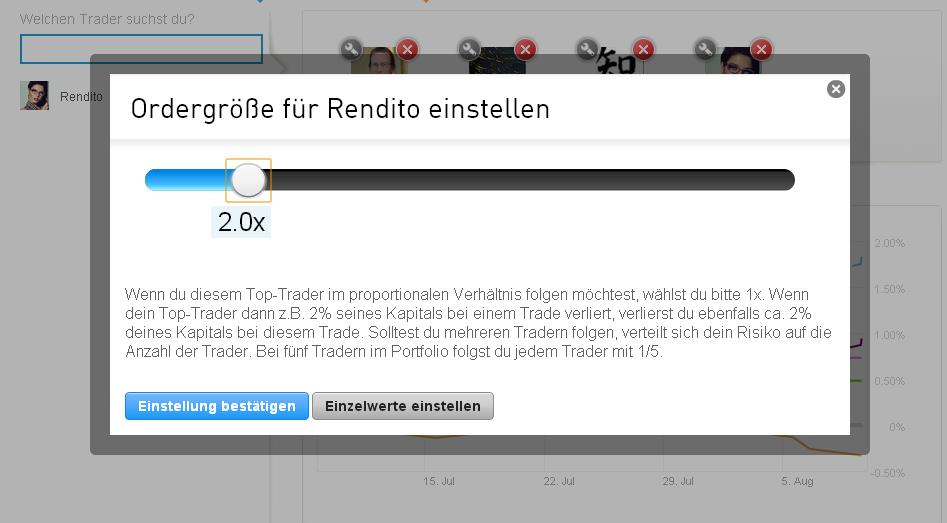 - Trader ValueTrading hat einen kleinen Abwärtstrend, der durch die Gewichtung von 1,5 etwas stärker im Depot ausfällt.