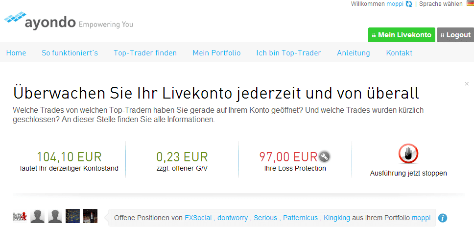 Fazit: Outperformance ayondo Top Trader im Livedepot