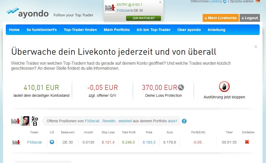 FXSocial ist mein Tradingaccount als Real Money Trader bei ayondo. Zur Demonstration der Routinen von ayondo und ayondomarkets bleibt dieser Account im Livedepot.
