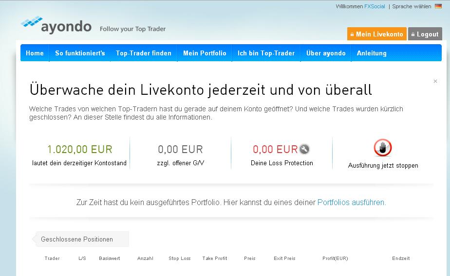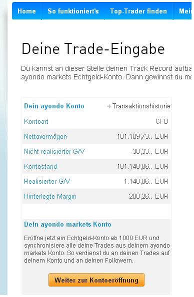 In der Orderplattform für die Trader erscheint ein HInweis zur Kontoeröffnung ab 1.000 Euro (zur Erinnerung, auf der alten ayondo-Plattform handelten Real Money Trader ab 2.000 Euro). Die Einstiegshürde ist also auch für Beginner, die mit ayondo ihre Karriere starten möchten, durchaus umsetzbar.