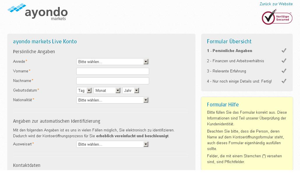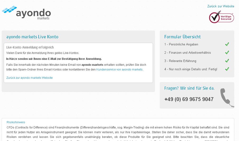Die Kontoeröffnung bei ayondomarkets ist in wenigen Schritten erledigt.