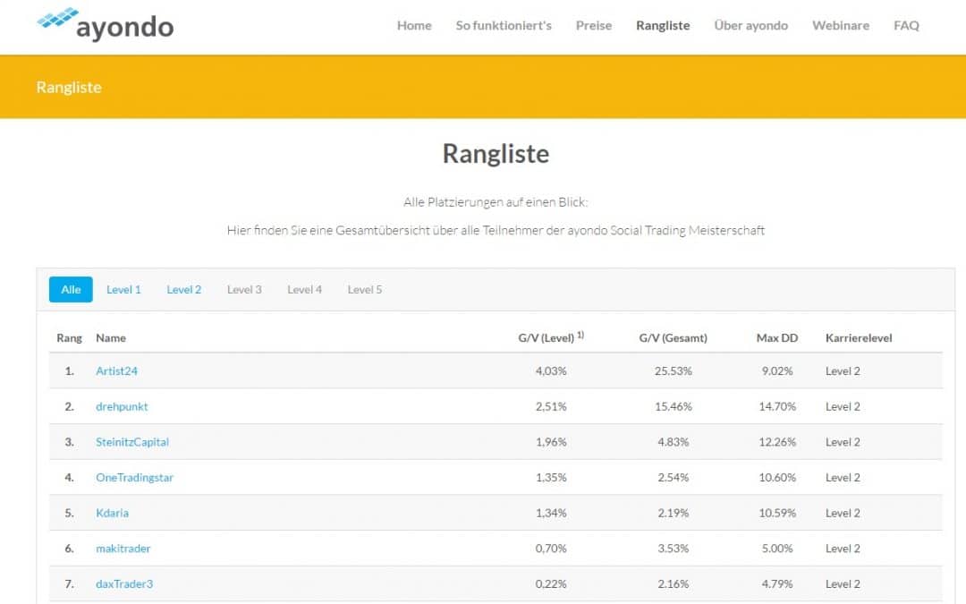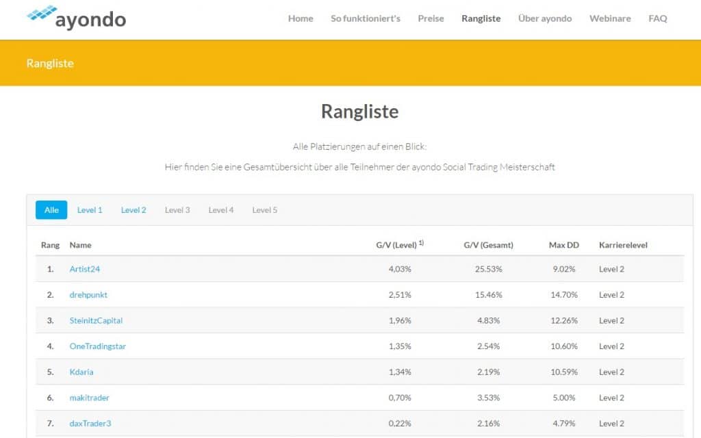 Für ayondo ist der Wettbewerb ein Erfolg, denn die Breite in den Level 4 und 5 nimmt zu. Wenn ich so die Gespräche des Abends Revue passieren lasse, dann sind alle Teilnehmer auch gewillt, sich dort oben zu behaupten. Warten wir es ab und wünschen ihnen und den folgenden Investoren viel Erfolg.