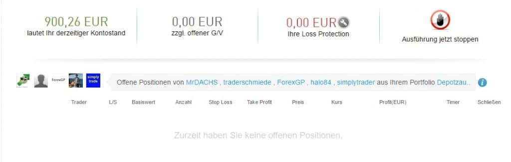 Also denn, auf ein Neues. Alle Handelsprofile werden mit Faktor 1 kopiert und wir schauen, was denn so in den kommenden Wochen daraus wird. Das Depot in dieser Konstellation hätte seit Jahresbeginn gut 2 % verdient. Aber ihr wisst ja, hätte, hätte…