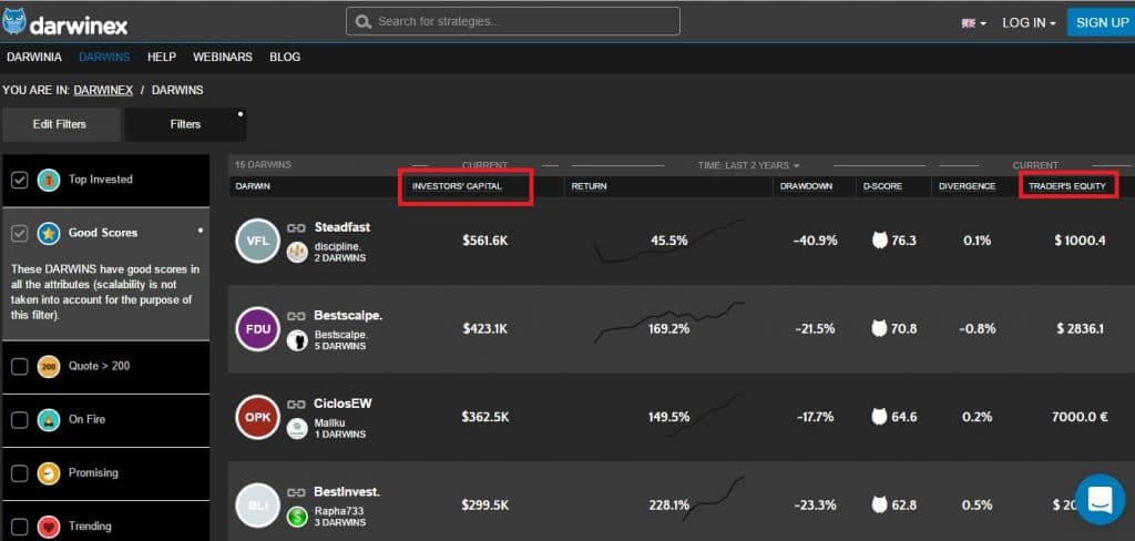 Bei dem recht jungen Angebot von darwinex gibt es aktuell 6 Trader mit einem Volumen von 300.000 bis 600.000 $.