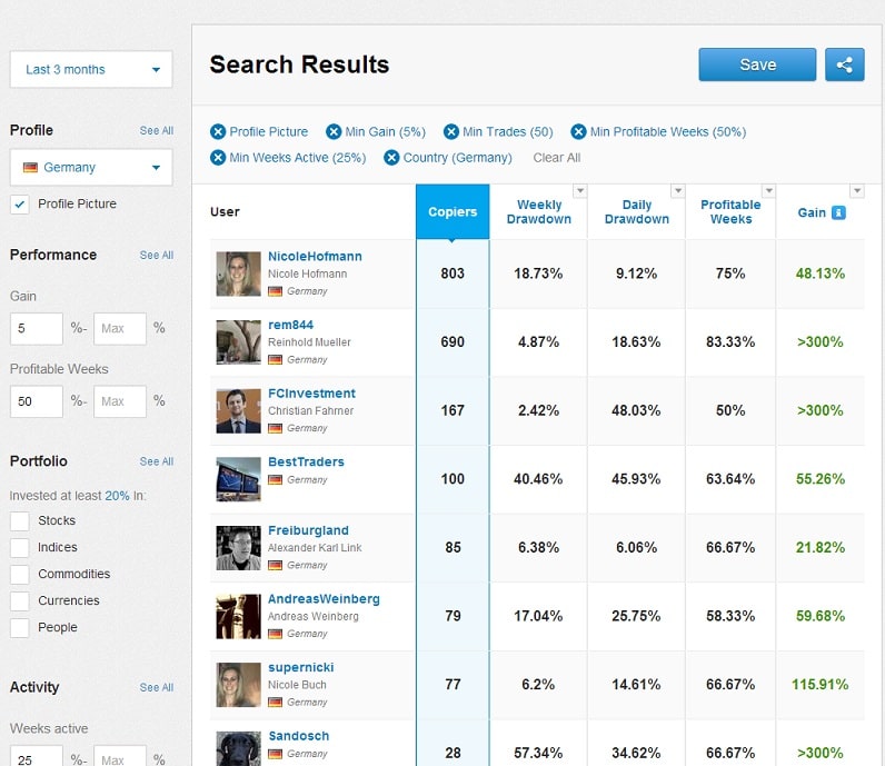 Der Nutzer hat also nicht mehr nur die Möglichkeit, die meistkopierten Trader als erste Wahl präsentiert zu bekommen, sondern kann die Suche nach seinen individuellen Kriterien vertiefen.