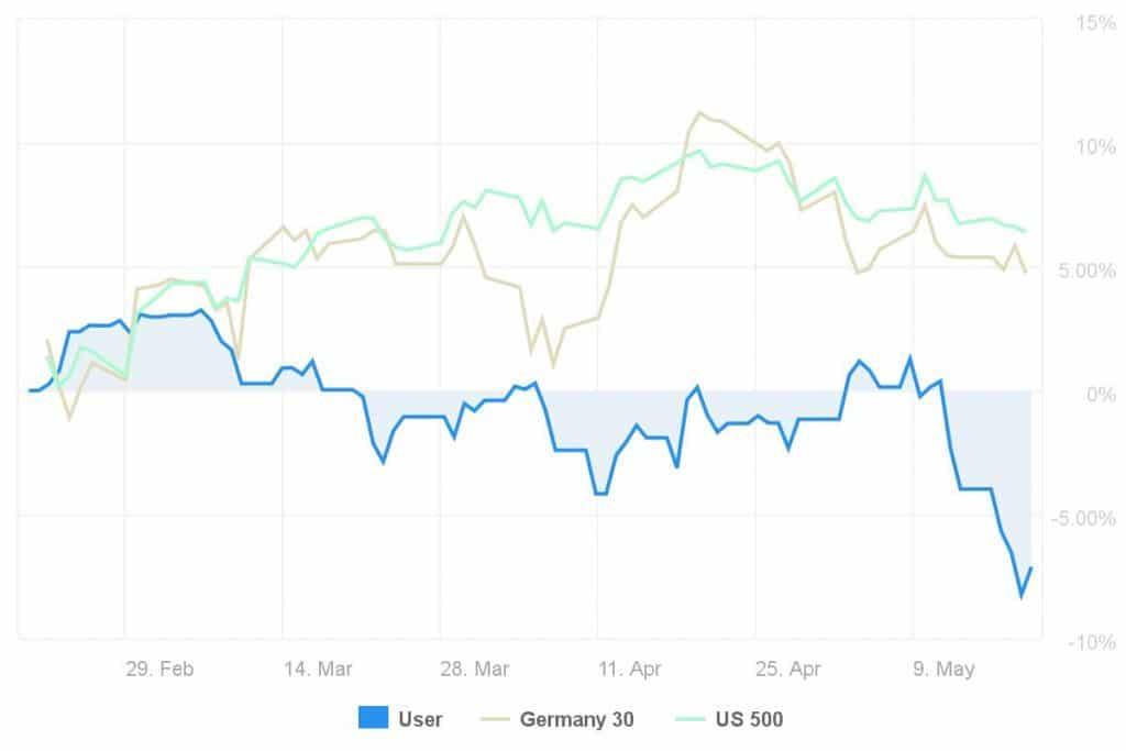 Denkt bitte immer daran, das Portfolio ausreichend zu diversifizieren. Es gibt eben nicht nur eine oder zwei Strategien auf ayondo, die sich lohnen, kopiert zu werden. Die Mischung macht es und dann wird der Drawdown eines Traders auch nur eine kleine Ecke auf die lange Sicht im Chart bleiben.