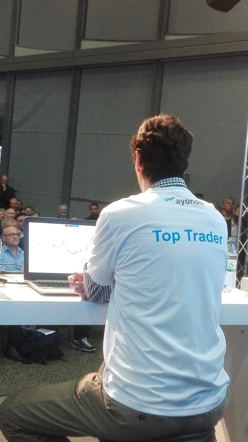 Auch dieses Jahr stellte sich ein ayondo Top Trader dem anstrengenden Event des Live Tradings auf der Hauptbühne. Neben bekannten Händlern der Szene war diesmal ein Gast aus England vertreten. Früher dominierte in den Werbespots von ayondo Top Trader Tom. Am Freitag nun saß Top Trader Tim Young für ayondo auf dem Podium und repräsentierte Timtrading