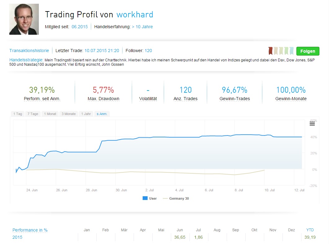 Seine Performance kann sich sehen lassen, ich folge ihm seit der ersten Stunde bin ihm schon über Facebook rund 1 Jahr im Live Trading gefolgt – klasse performance und kein großkotziger Typ wie viele andere.