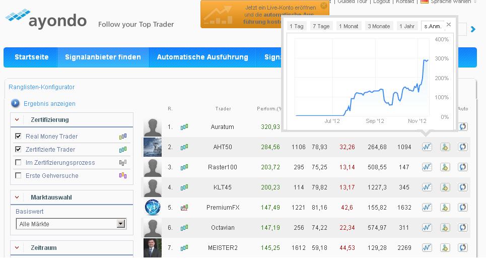 Ayondo ist auch nicht zu beneiden, immer eine ausgewogene Mischung von Tradern in den regelmäßigen Newslettern vorzustellen. Diese beiden aber gehören mit Recht zu den Dauerkandidaten.