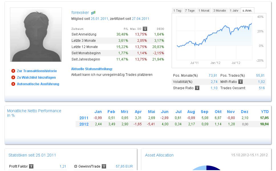 Performance von Valens ist gut, im Eigenhandel auch völlig o.k. Als zu kopierender Trader aber nicht die erste Wahl, da er zu viel Trades mit +1 oder +2 pips schließt. Die Frage ist dann, was bleibt beim Verfolgerkonto hängen ? Das dieses immer die gleiche Ausführung erhält, mag bezweifelt werden. Wenn valens seine durchschnittlichen pips auf +5 oder besser +10 steigern könnte, wäre das schon sehr gut. Schau mal in die Transaktionshistorie von dieser Woche rein.