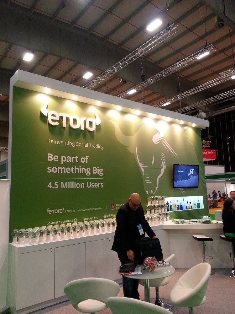 Etwas deplatziert fühlte sich aber inzwischen ein Vertreter des Social Trading. eToro war auch vertreten, um natürlich für Ihre werbenden Partner (und da schließ ich mich ein) für Fragen, Neuerungen und Probleme zur Verfügung zu stehen. Am Samstag gab es einen sehr offenen und interessanten Vortrag zum Thema Social Trading und den damit verbundenen Aussichten für werbende Partner.