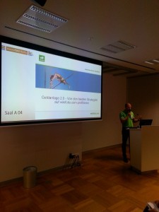 15 Uhr hieß es dann aber – flink ins Untergeschoss zu Robert Wanner von wikifolio. Der Vortrag war überfüllt und das Publikum stand oder saß sogar auf Fussboden. Souverän und sehr sachkundig führte Robert Wanner durch den Vortrag und beantwortete die Fragen des Publikums. Kernpunkte waren hier natürlich Sicherheit der Einlagen, Vorteile von wikifolio.com gegenüber anderen Angeboten u.a.
