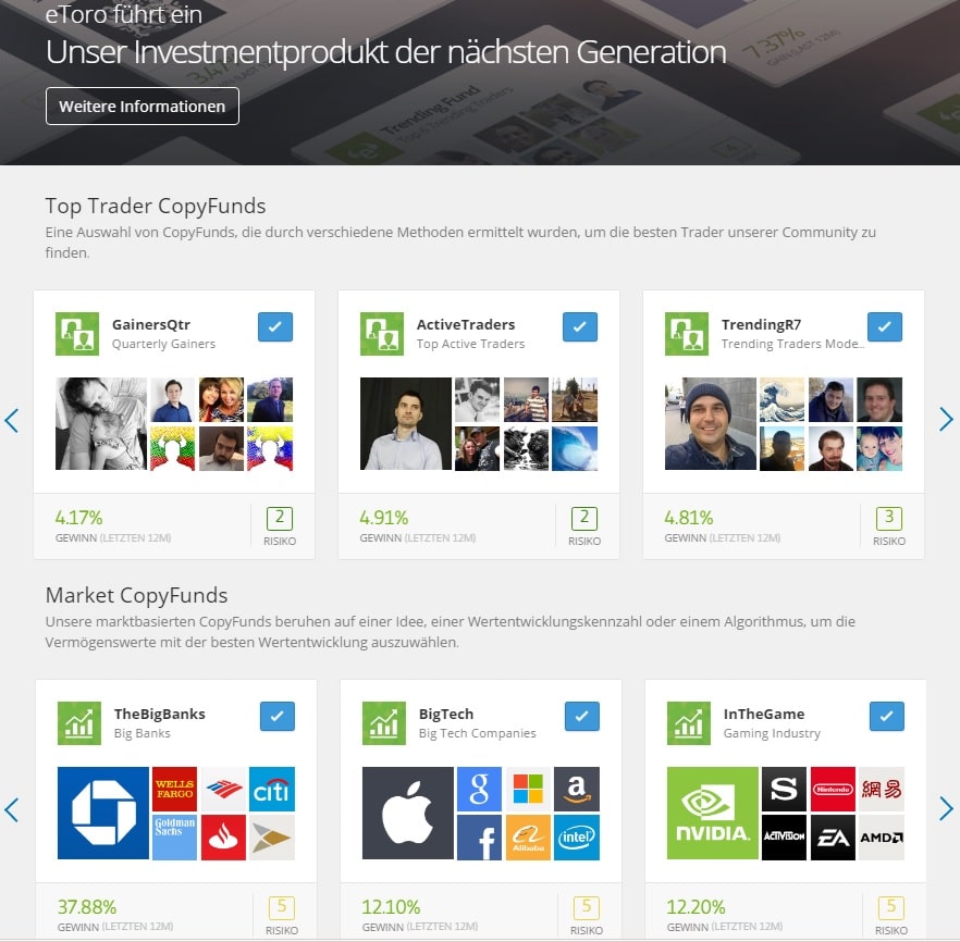 Der Trend zu vorgefertigten Lösungen geht an den Social Trading Portalen nicht ganz vorbei. So hatte eToro in 2016 die sogenannten Copyportfolios eingeführt, als weitere Alternative für Investoren. Auch hier agiert ein Algorithmus im Hintergrund und der Anleger vertraut auf den Erfolg der Handelslogik. Wer sich also die Mühe sparen will, in der Community von eToro erfolgreiche Trader zu finden, der vertraut auf die Basketlösungen der Plattform. Die Evolution des Social Tradings ist damit auf einem Niveau angekommen, dass man durchaus wie folgt bezeichnen kann: Vom Raubtier zum Faultier…