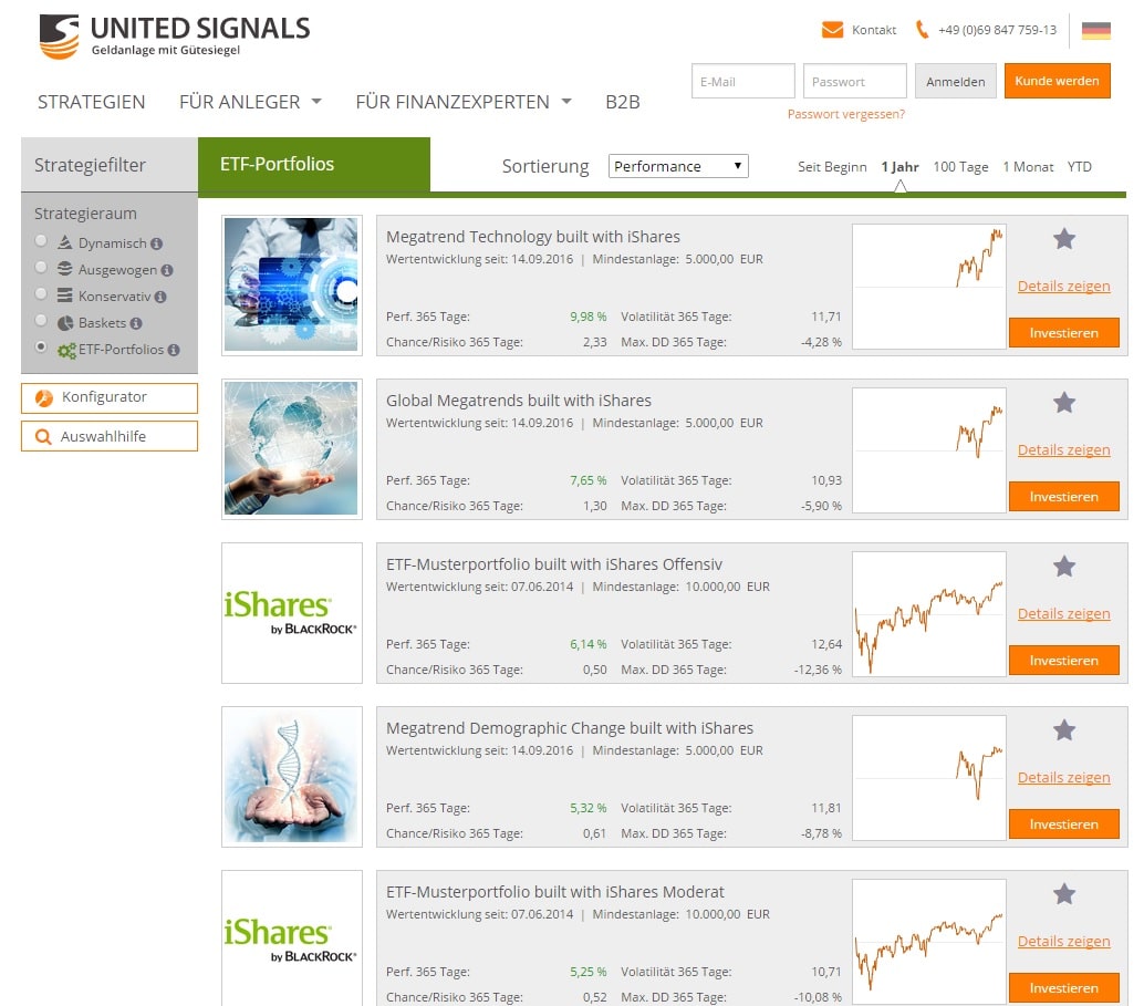 Auch Unternehmen wie United Signals suchen inzwischen ihr Heil in maßgeschneiderten ETF Portfolios, die der Kundschaft neben den Anlagestrategien der Finanzexperten angeboten werden. Man schwimmt also auf der Welle mit…