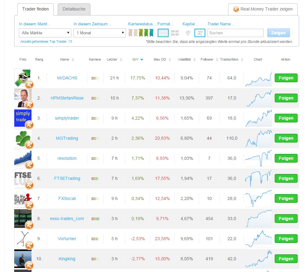 Bsp. würde ich jetzt Trader die vorne sind und viele Follower haben austauschen und mich auf Trader konzentrieren die erst noch was „beweisen“ müssen (natürlich immer vorausgesetzt es handelt sich um solides Trading) oder „alte Hasen“ wie Patternicus oder FcInvestment die tief im DD. stecken (wobei hier klar ein Real Money Status bevorzugt wird)