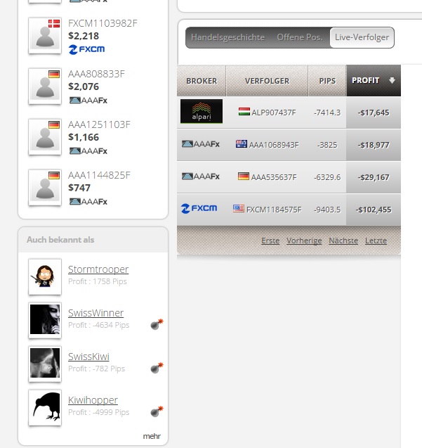 FXCM und Alpari UK sind insbesondere bei ZuluTrade stark mit Followerkonten vertreten. Die Hauptbrokerpartner von ZuluTrade sind wie folgt betroffen:
