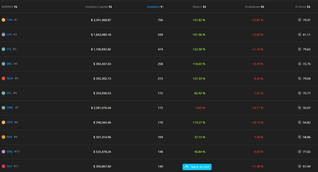Der lange Weg durch die Wüste wird irgendwann belohnt. Inzwischen erfreuen sich mehrere Händler über Investitionen von mehr als 1 Mio Dollar. Das dickste Darwin mit aktuell 3,3 Mio Dollar ist derzeit für Neuinvestitionen geschlossen. Schließlich sollen die Investoren nicht durch zu große Slippage benachteiligt werden. Nach Auskunft von Juan Colon im Webinar soll dies jedoch die Ausnahme bleiben und man arbeite an Skalierungslösungen, die dies zukünftig verhindern