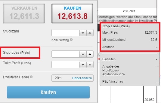 Mindestabstand für Stop gut 40 Punkte im Dax30 CFD