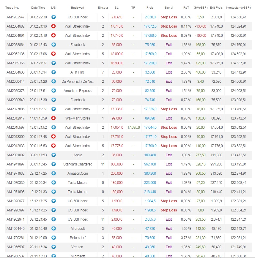 Unübersehbar ist jedoch der Kampf um den Drawdown bei Trader 1 und 3. Trader 1 ringt noch mit der erworbenen Stufe. Trader 3 hat das Ringen vorerst verloren. Ab heute geht es eine Stufe tiefer, vom Professional Level in das Advanced Level.