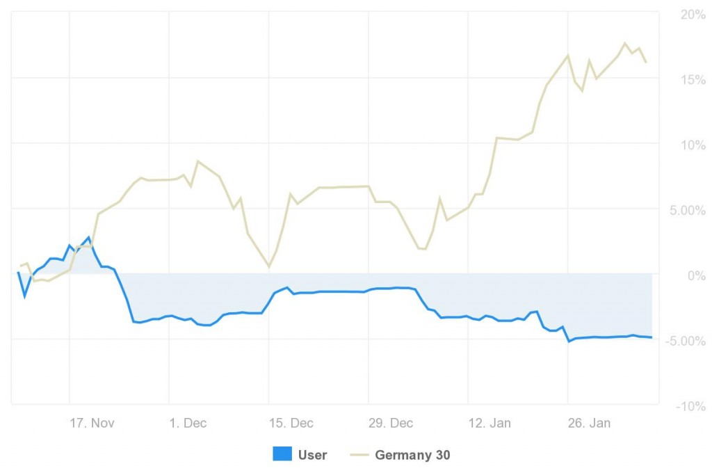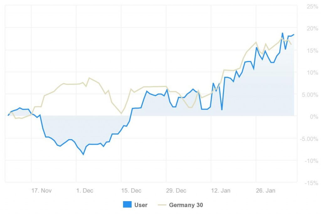 Angenommen der Follower will wissen wie sich 7 Trader in den letzten 13 Handelstagen gegenüber dem Dax (der vll. eine sehr volatile Phase hatte) verhalten haben.