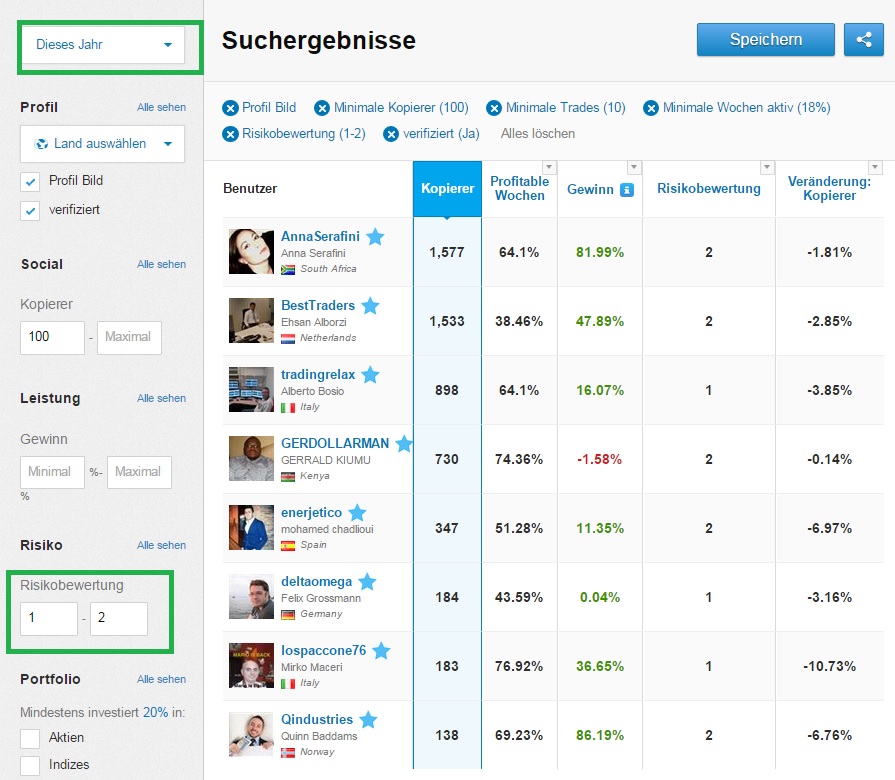 Popular Investors mit einer Risikobewertung der Klasse 2– sehr defensiv – von maximal 9 Risikoklassen
