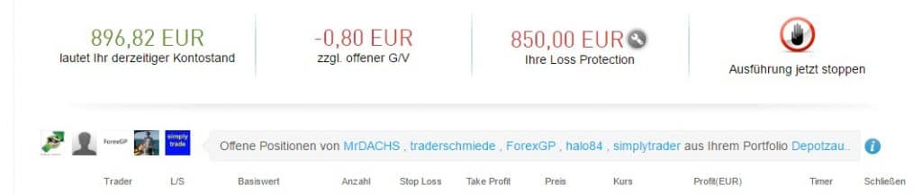 Die Loss Protection wurde auf 850 Euro festgezurrt. Ich hoffe mal nicht, dass diese in den kommenden Tagen gerissen wird.