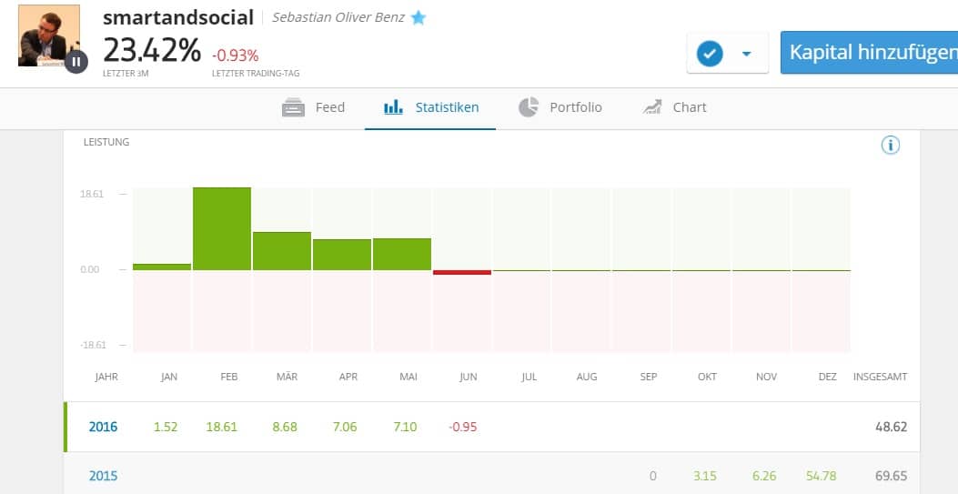 Insgesamt sieht es bei eToro recht gut aus. Der Account liegt mit 5 % in 2016 im Plus. Die Politik der ruhigen Hand macht sich bezahlt…
