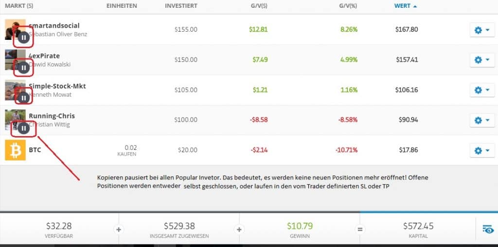 Im Gegensatz zu meinen ayondo Top Tradern ist das Wirken meiner Popular Investors bei eToro nur auf den ersten Blick etwas besser.