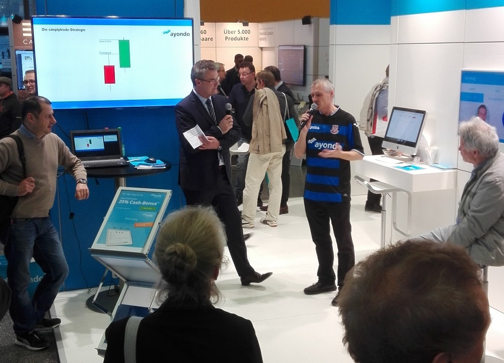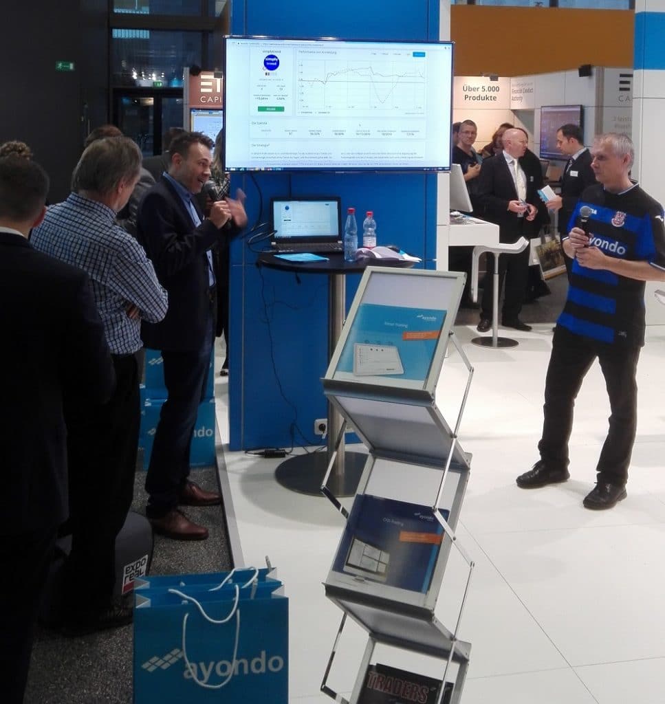 Viel Interesse zog auch auch dieses Jahr ayondo auf sich. Neben einem vielfältigen Standprogramm mit Alexander Mantel (ayondo Follower Academy) , Gereon Kruse (Börsengeflüster), Benjamin Feingold (Feingold Research) , MrDACHS, simplytrader (beide ayondo Top Trader) und meinereiner vertrat auch dieses Jahr MrDACHS die Social Trader auf der Hauptbühne beim Live Trading Event. Einige Impressionen könnt ihr den folgenden Bildern entnehmen.