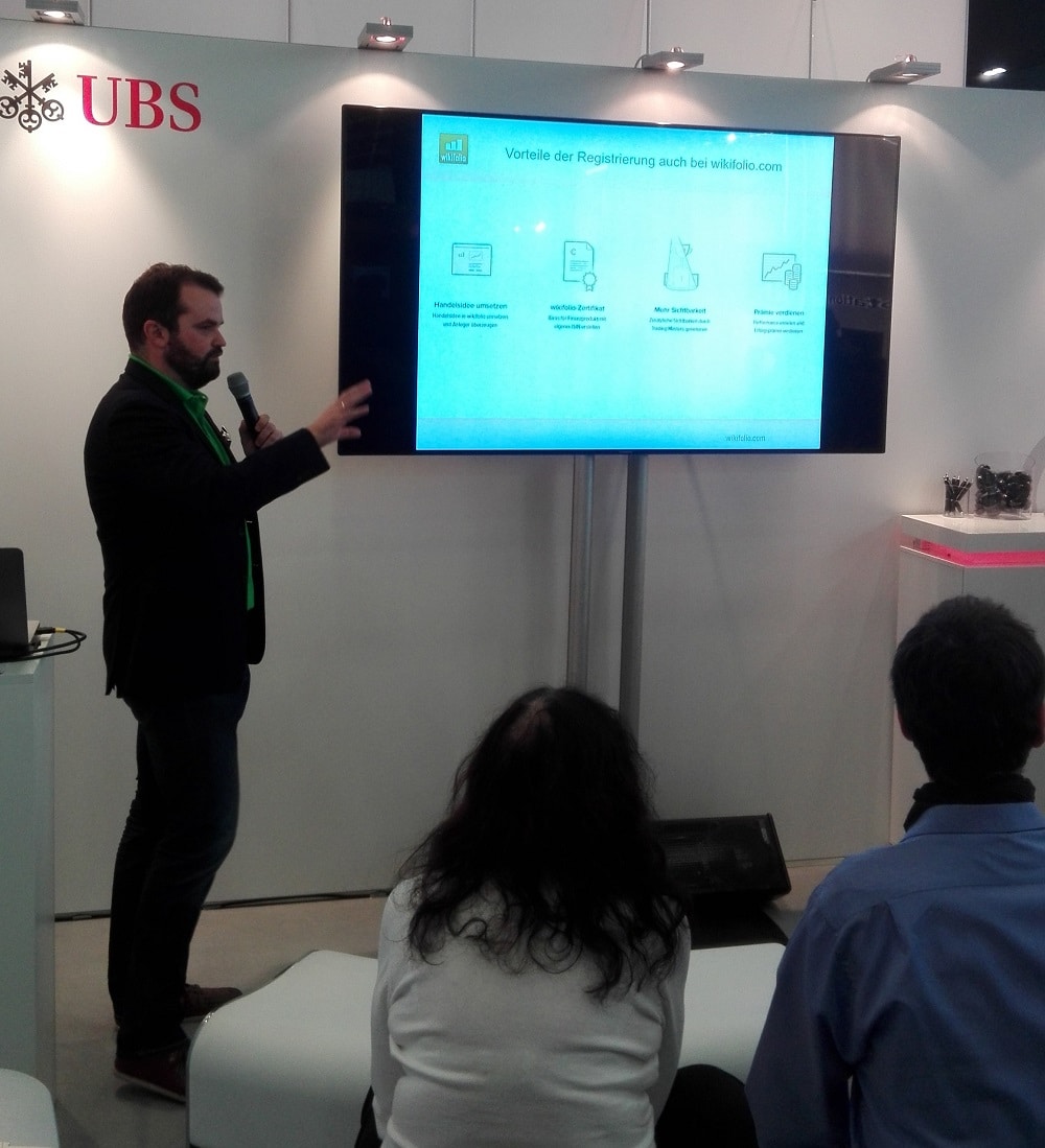 Das Börsenspiel des Jahres, die Trading Masters 2017 wird auch diesmal u.a. von wikifolio.com unterstützt. Stefan Greunz erläuterte in einer Präsentation die Verknüpfung des Wettbewerbs mit der Social Trading Plattform. Vermutlich wird man ihn im April 2017 zur Siegerehrung auf der Invest wieder begrüssen können.