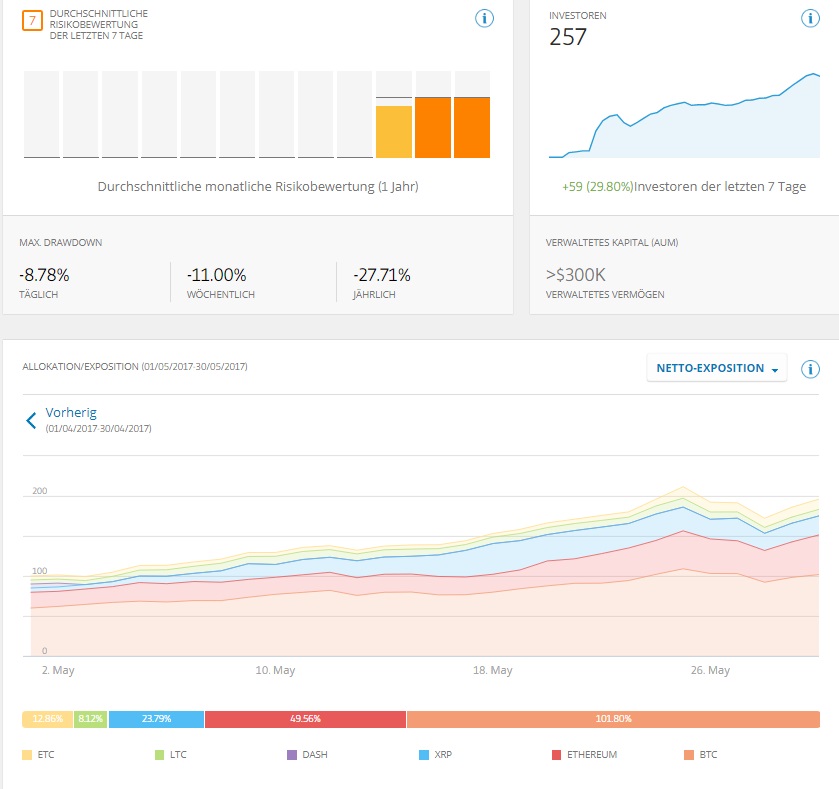 Seit einigen Wochen wurde auch das CopyPortfolio mit weiteren Handelspärchen vervollständigt und eToro macht nun mit diesem Instrument das wohl kompletteste Angebot für die interessierten Investoren. Die Vola des Crypto CopyPortfolio ist natürlich nicht von schlechten Eltern.