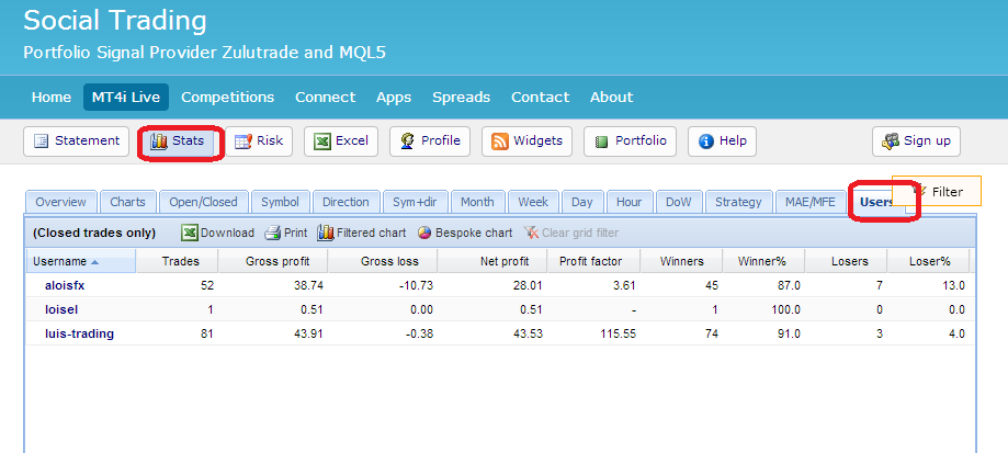 Mit der Vielfalt der unterstützten Handelsplattformen bietet MT4i Tradern, die ihren Track Record von unterschiedlichen Brokern bündeln und damit ihren potenziellen Kunden einen transparenten Überblick verschaffen wollen, eine perfekte Lösung. Schluss mit der Suche und dem Performancepuzzle. Wer als Signal Provider mit offenen Karten spielt, kann mit der Portfoliofunktion alle Strategien auf einen Blick offenlegen. Dabei ist es egal, ob zwei Accounts bei Zulutrade, einer bei currensee, einer bei FxStat, myfxbook, MQL5 oder sonstwo sind. Sollte es ayondo auch noch schaffen, zumindest auf Seiten der Top Trader eine Metatraderlösung zu installieren, dann wäre dies perfekt. Jeder Signalprovider hätte Gelegenheit, eine Perfomancepage seinem Publikum zu präsentieren, die keine Wünsche offen läßt und dem Investor die Chance gibt, alle Tradingfacetten des Signal Providers zu prüfen, um sinnvolle Investitionsentscheidungen treffen zu können.