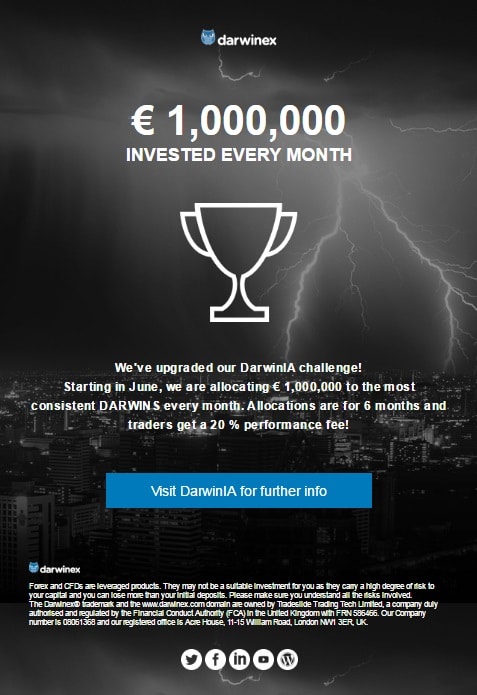 Im November 2014 startete Darwinex die erste DarwinIA Challenge. Damals standen noch 2.500 € zur Verteilung. Heute nun geht der Wettbewerb in eine weitere Runde. Darwinex geht mit gutem Beispiel bei der Umsetzung der Vision, den unabhängigen Trader als eigene Asset Klasse zu etablieren, voran.
