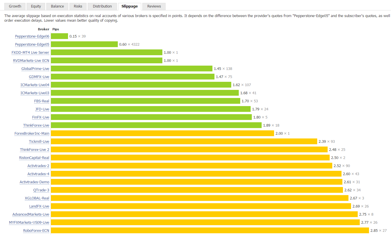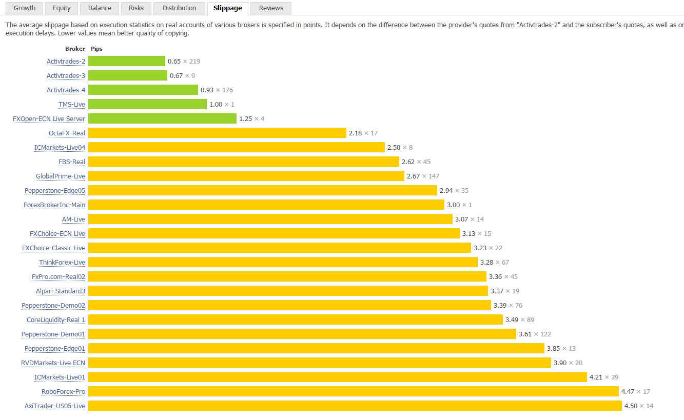 Es nützt einem relativ wenig, wenn man selbst zwar einen sehr guten Broker hat, die Signalnehmer jedoch am anderen Ende der Welt über eine völlig andere Marke handeln und mit erheblicher Slippage zu kämpfen haben, die das Kopierergebnis vermasseln und damit zum Verlust der gewonnenen Kopierer führen.