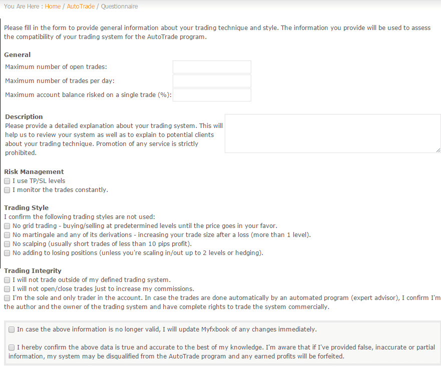 - A connected real and verified MetaTrader 4 account with Myfxbook with at least 3 months history.