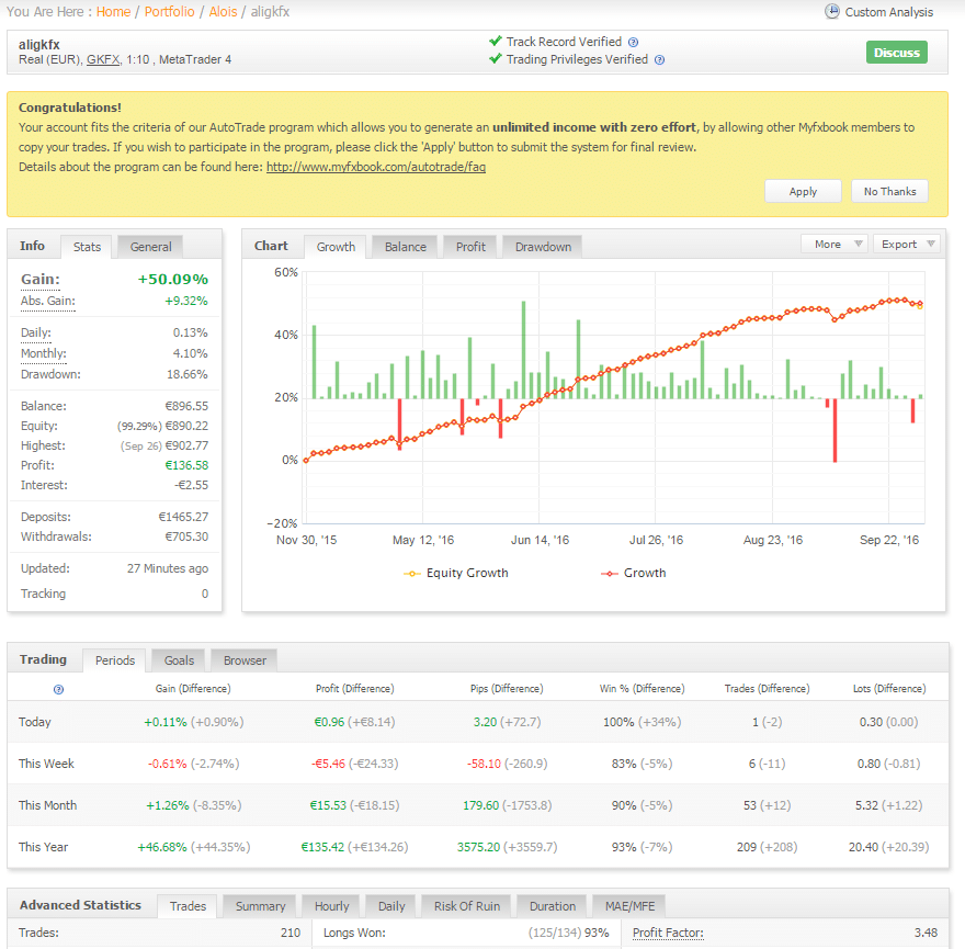 Gratulation, ihr Account erfüllt die Kriterien unseres AutoTrade Programms, blabla… Damit besteht nun also die Chance, in den Kreis der aktuell 50 Provider des Programms aufgenommen zu werden. Dies ist allein deswegen schon exotisch, da ich vorzugsweise Dax und Dow gehandelt habe und Devisenpaare nicht die Mehrzahl der Trades darstellen.
