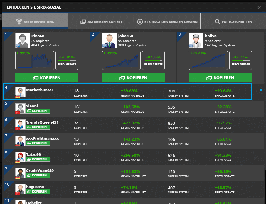 Aktuell kopieren diesen Account bereits einige Trader auf GKFX mit Sirix Social Trading. Ausser einem Platz im Ranking kommt da aber nichts bei rüber…Dafür handeln die Kopierer dort aber zu gleichen Konditionen wie ich selbst.