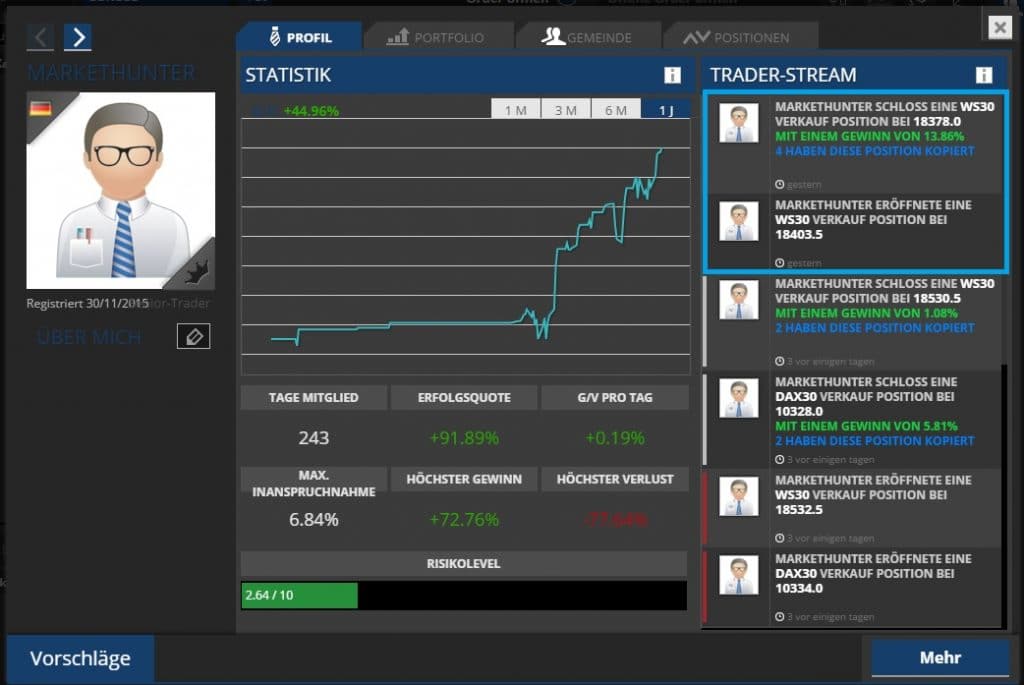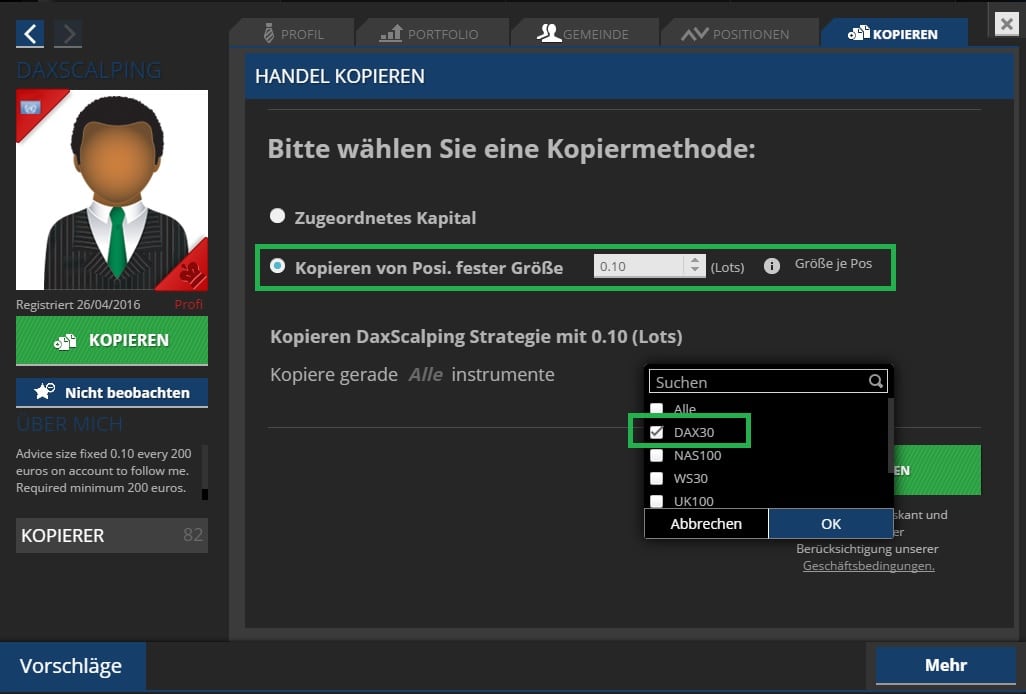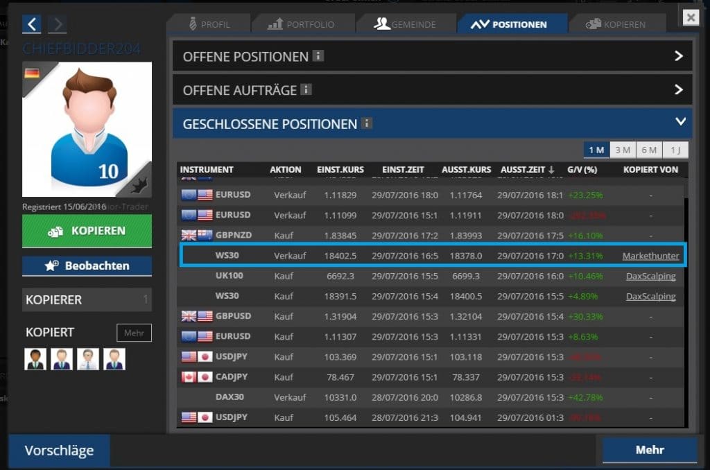 Der Trader handelt Index CFD’s bei GKFX. Ich folge ihm aber ausschließlich mit den Daxtrades.