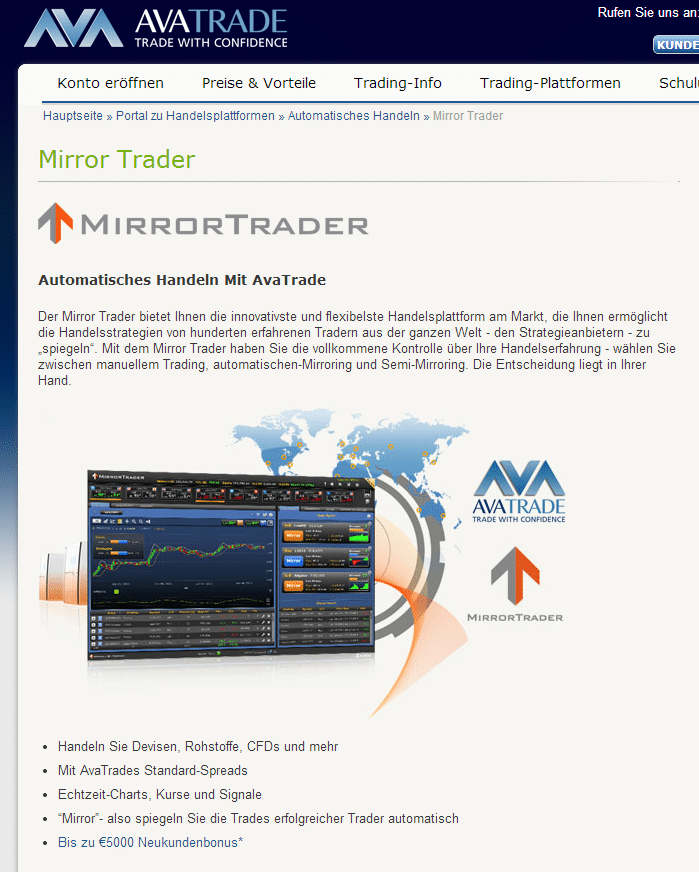 auf der Mirrortraderseite von AvaTrade wird ausdrücklich auf die Bonusaktion verwiesen
