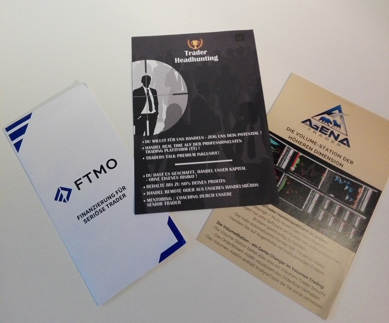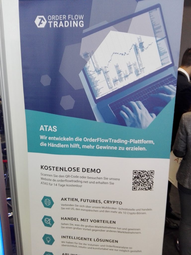 Hier waren u.a. ATAS vertreten, aber auch natürlich Dirk Hilger mit seinem Stereotrader. Dirk war diesmal neben Vorträgen und Handel bei Tickmill auch einer der „Bühnentrader“ beim Live Event am Freitag. Inzwischen gibt es auch ein hübsches kleines Prospekt zur Wunderwaffe für Metatrader.