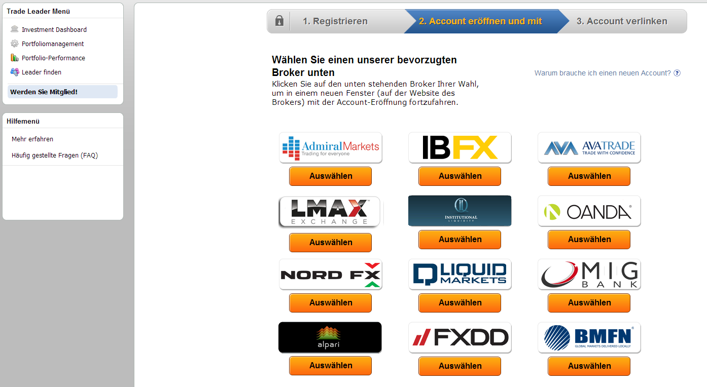 Wer den Trade Leadern folgen möchte hat über AdmiralMarkets die Gelegenheit, mit einem Mindestobulus von 1.500 € ein Admiral.Currensee – Konto (Mindestordergröße 0.1 Lot) zu eröffnen und die Profis zu spiegeln. Weitere unterstützte Broker sind alpari, ForexYard , fxcm und Markets.com