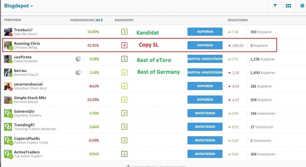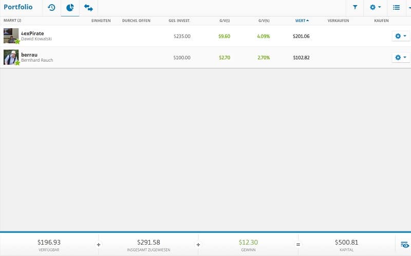 Die Fahne für die deutsche eToro Community hält nun fast allein Bernhard Rauch hoch. Mit 1.600 Kopierern einer der Zugpferde für Kopierer. Durch meine ausgestoppten Positionen wurde etwas Kapital frei. Ich habe daher mein Investment in 4exPirate verstärkt. Das Depot vertraut nun weiterhin auf Dawid Kowalski und Bernhard Rauch. Sehr ärgerlich ist der aktuelle Jahresverlust, aber…das Jahr ist ja noch lang.