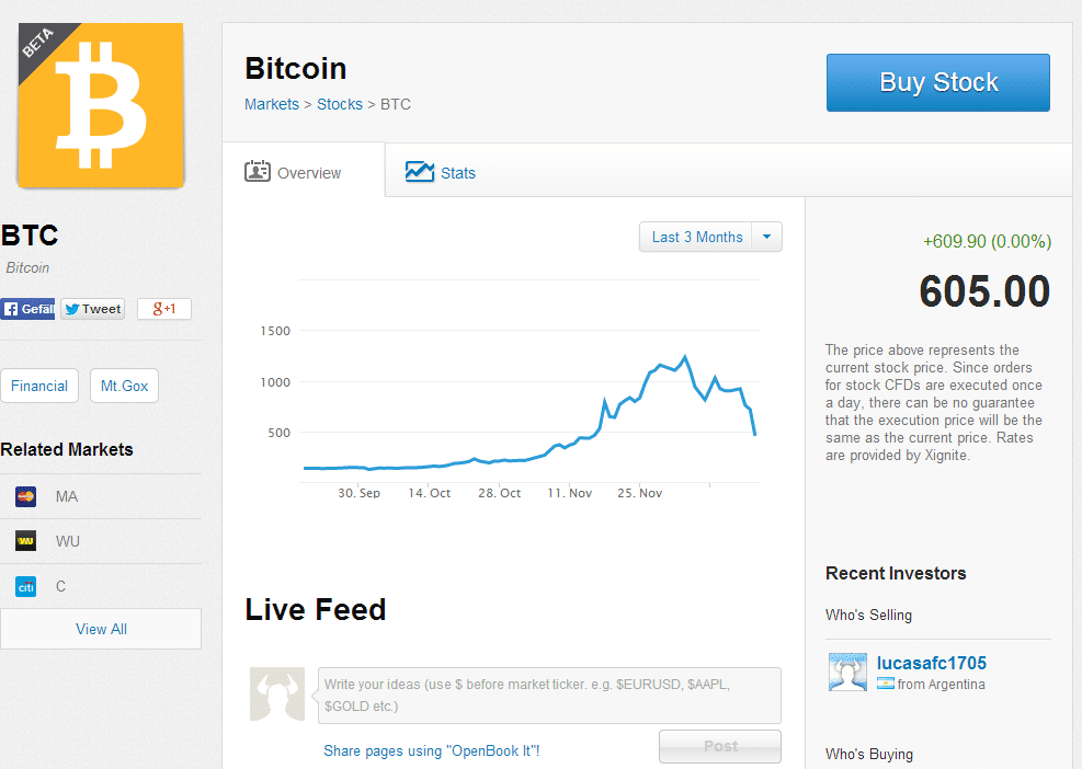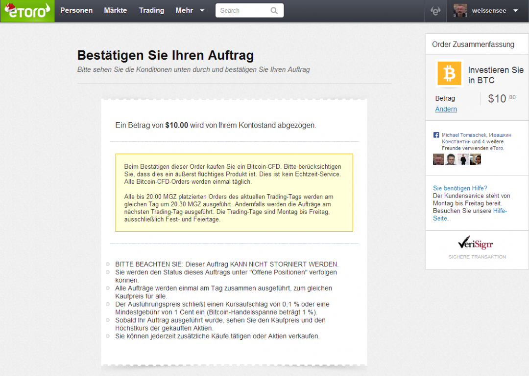 Nun ist es auch bei eToro soweit. Mitglieder des größten Social Investment Network können nunmehr auch in die virtuelle Währung investieren. Bitcoin ist auf eToro verfügbar. Die Transaktionskosten sind allerdings einen kleinen Tick höher als bei Aktien CFD’s. Werden dort nur 0,1% berechnet, bedient sich eToro hier mit 1 % laut Forex Magnates.