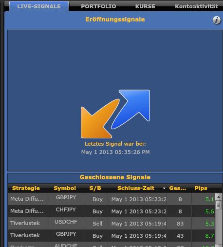 Tradency führt, ähnlich wie z.B. Zulutrade einen Score der Signal Provider. Maximaler Score ist 10. Im rechten Fenster kann der Trader die aktuellen Handelssignale verfolgen und bei Bedarf manuell kopieren.