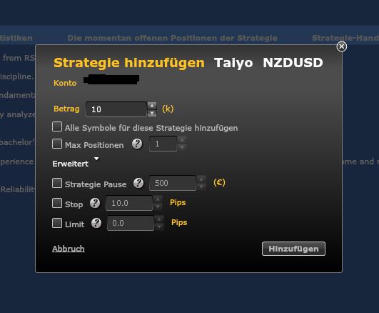 Wer sich für einen Tradency Signal Provider entscheidet, hat diverse Einstellungsmöglichkeiten zu