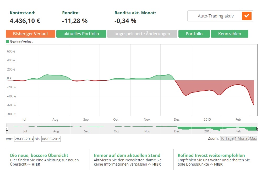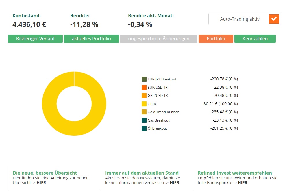 Wem auch immer ihr euer Vertrauen schenkt, testet vorher die angebotenen Strategien mit einem Demokonto. Refined Investment hat hier zumindest die Nase vorn, denn es gibt aktuell keine zeitliche Begrenzung.
